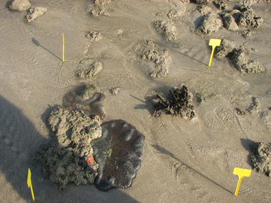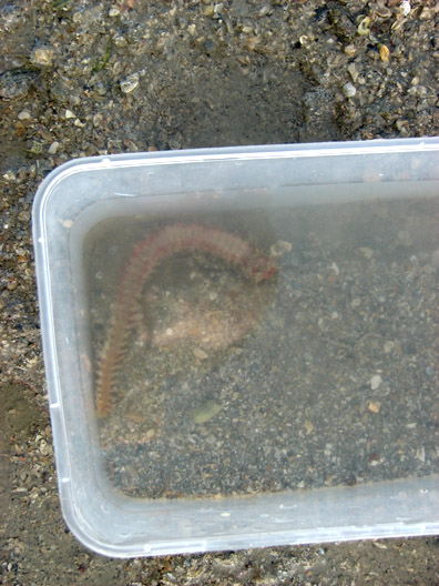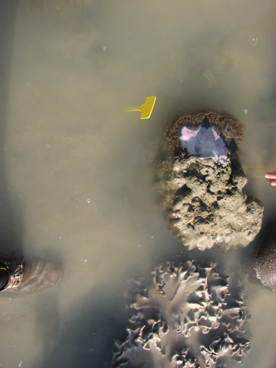 data gathering happened during the morning walk when we witnessed very low tide(7am: 0.1m, 8am: 0.0m) and observed various intertidal life forms. data sets taken: digital photos, videos, sound, gps locations, hand writings, etc. the collected data drove the audio visual performance which happened on the 29th of july at the 'dis-locate' festival in tokyo, japan.